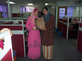 k , ni kisah sebelum masuk bulan Nov hari tu , lamakan aku dok peram??? hehehhe ..kami di ofis telah adakan jamuan perpisahan utk amy...sedih jugak dlm hati coz seorg lagi member finance kena pergi meninggalkan kami semua kat sini .apa nak buatkan , ni semua utk kebaikan beliau jugak . harap-harap , amy happy kat tempat keja baru .